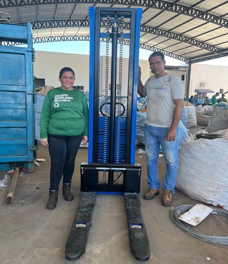 Doação de empilhadeira semi elétrica e outros equipamentos fortalece cooperativas de Três Lagoas e Brasilândia e beneficia cerca de 30 agentes ambientais